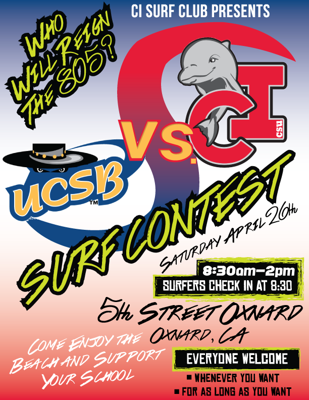 For the first rival school surf contest between UCSB and CSUCI. First Initiated in the spring of 2014, the contest still runs in Oxnard, California every year in April.